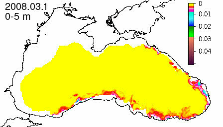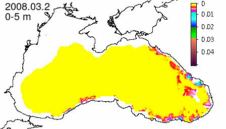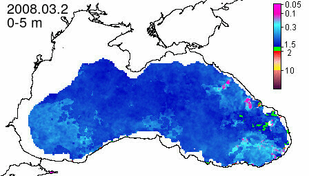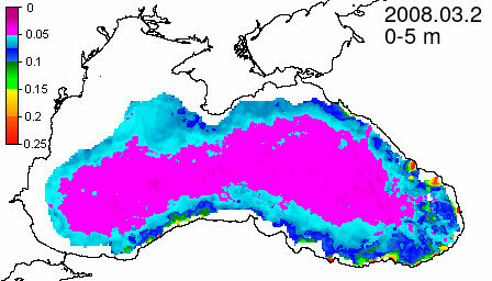 colored detrital matter absorption coefficient at 490 nm, m^-1