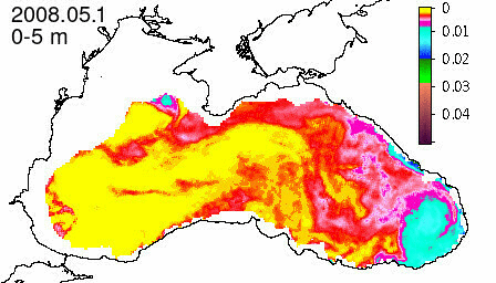 chlorophyll a concentration, mg m^-3