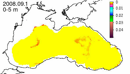 chlorophyll a concentration, mg m^-3