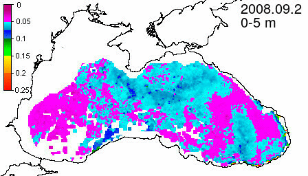colored detrital matter absorption coefficient at 490 nm, m^-1
