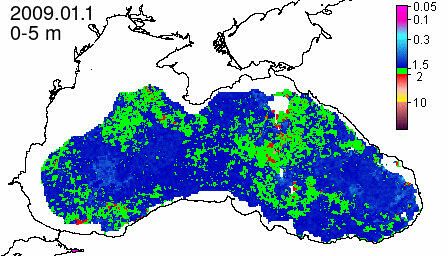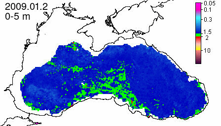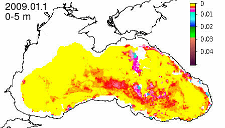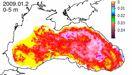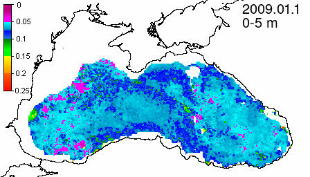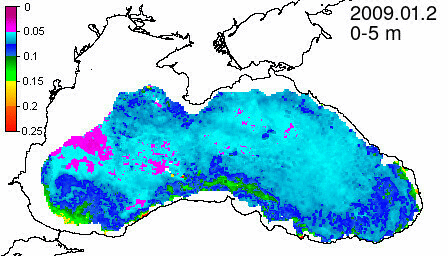 colored detrital matter absorption coefficient at 490 nm, m^-1