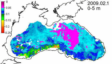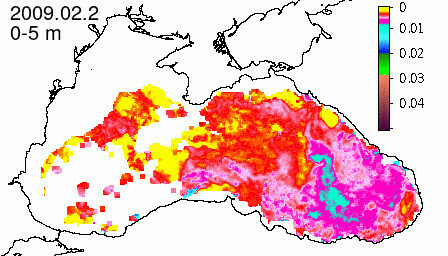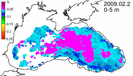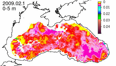 colored detrital matter absorption coefficient at 490 nm, m^-1