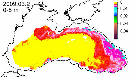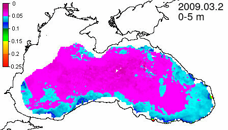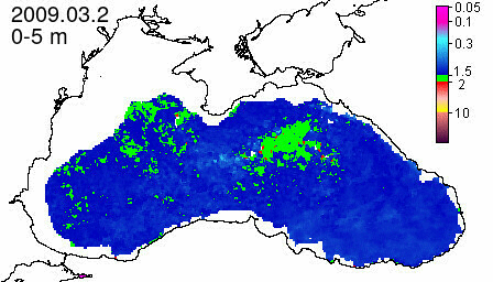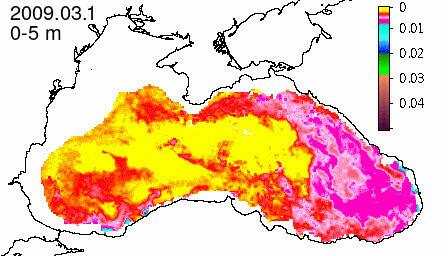 chlorophyll a concentration, mg m^-3
