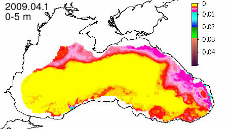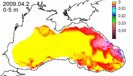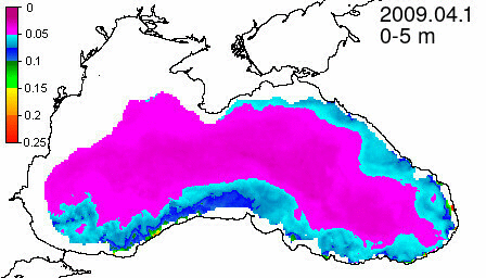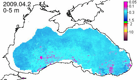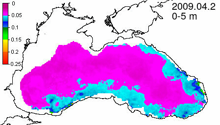 colored detrital matter absorption coefficient at 490 nm, m^-1