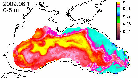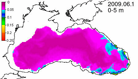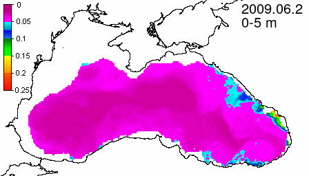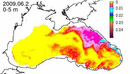 colored detrital matter absorption coefficient at 490 nm, m^-1
