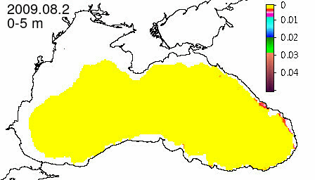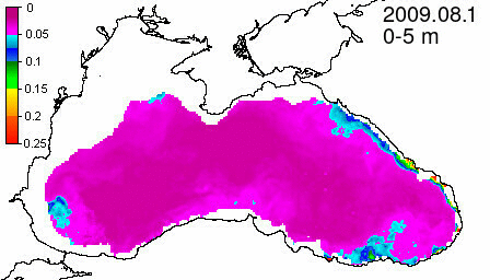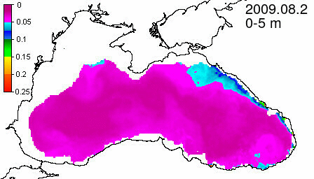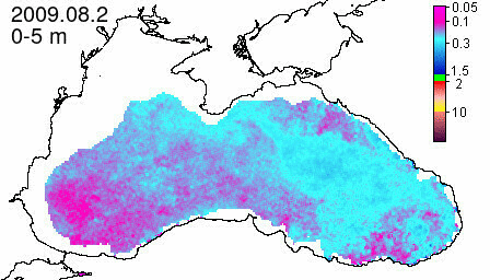 colored detrital matter absorption coefficient at 490 nm, m^-1