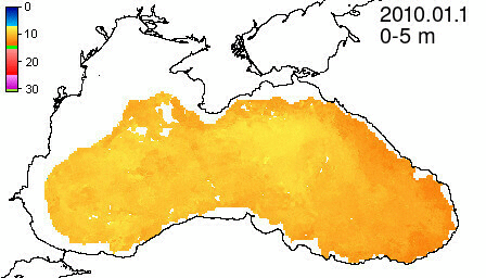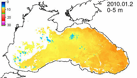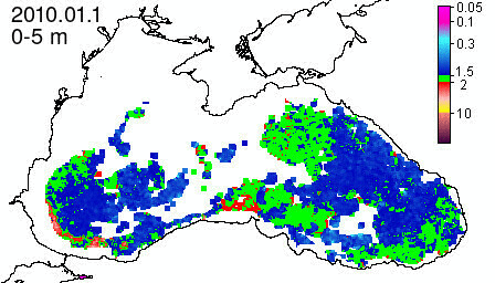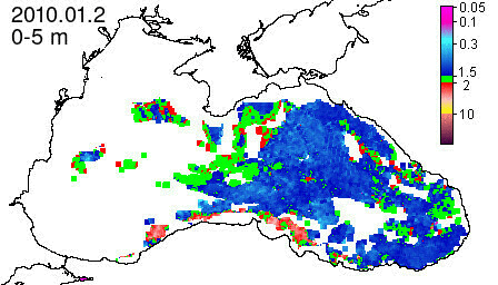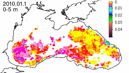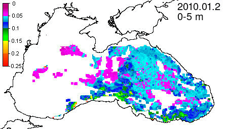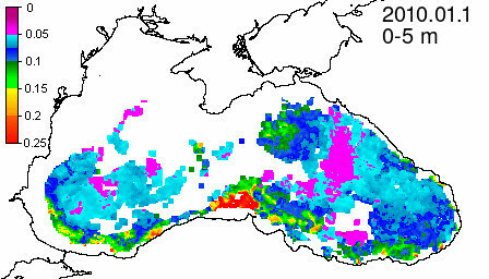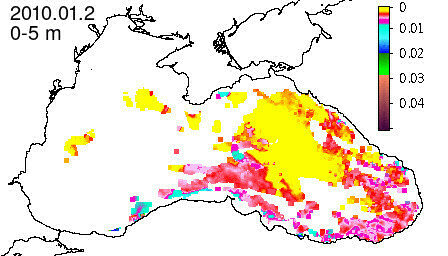 colored detrital matter absorption coefficient at 490 nm, m^-1