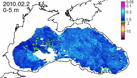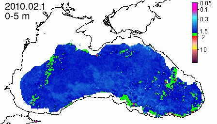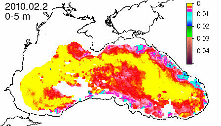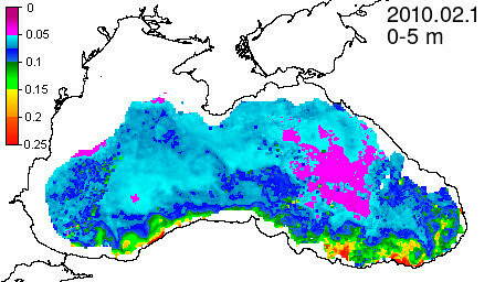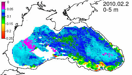 colored detrital matter absorption coefficient at 490 nm, m^-1