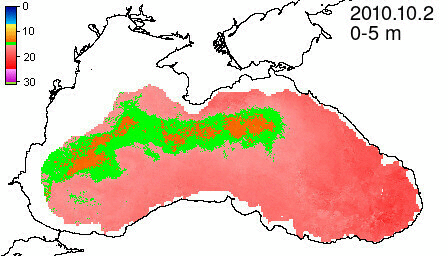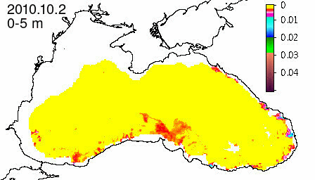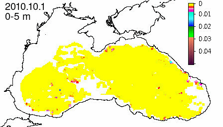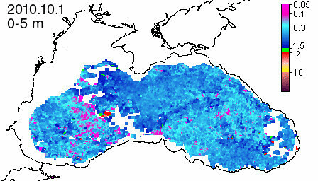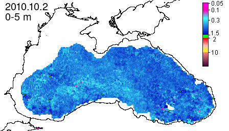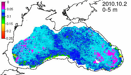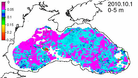 colored detrital matter absorption coefficient at 490 nm, m^-1