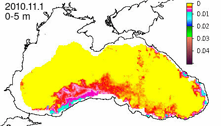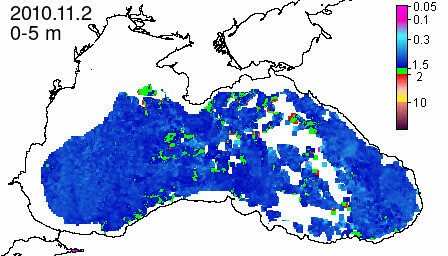 chlorophyll a concentration, mg m^-3