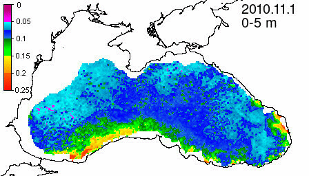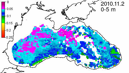 colored detrital matter absorption coefficient at 490 nm, m^-1