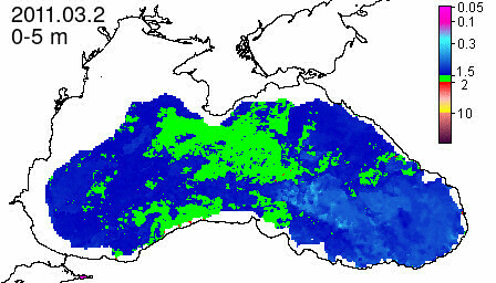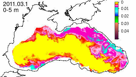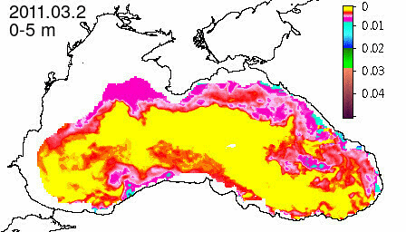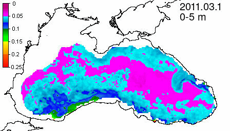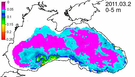 colored detrital matter absorption coefficient at 490 nm, m^-1
