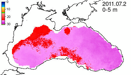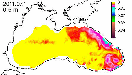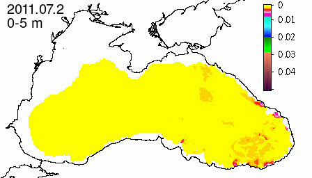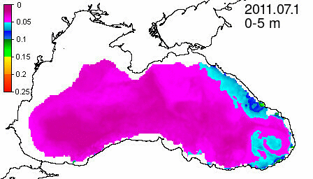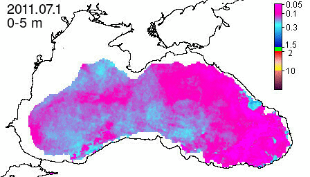 colored detrital matter absorption coefficient at 490 nm, m^-1