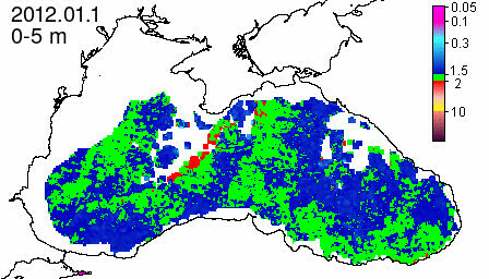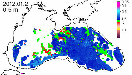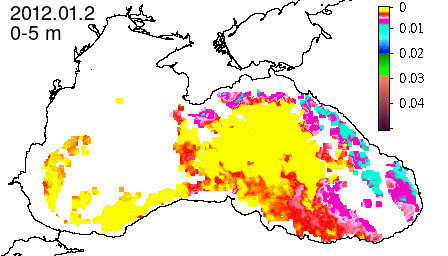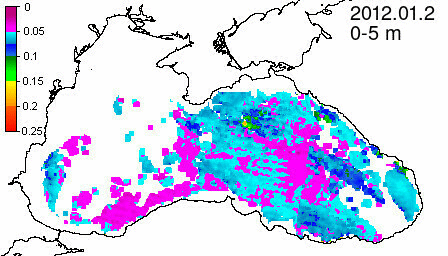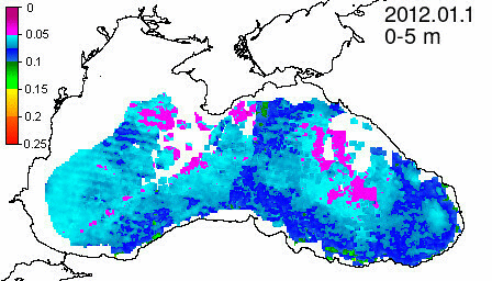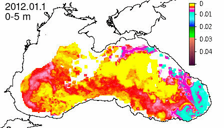 colored detrital matter absorption coefficient at 490 nm, m^-1