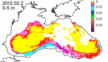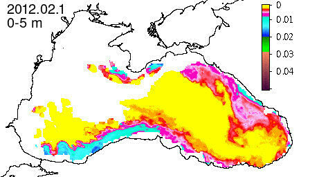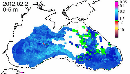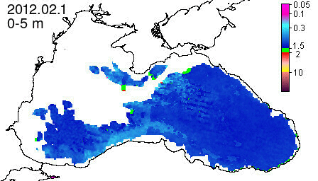 colored detrital matter absorption coefficient at 490 nm, m^-1