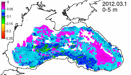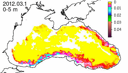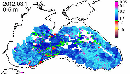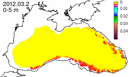 chlorophyll a concentration, mg m^-3