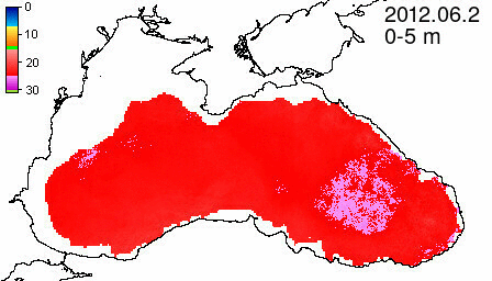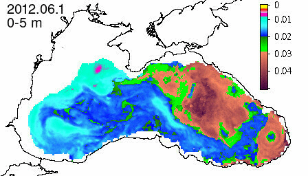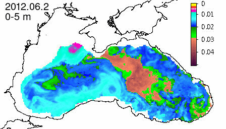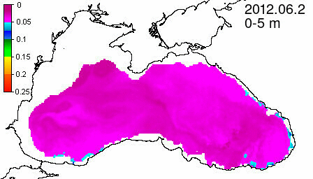 colored detrital matter absorption coefficient at 490 nm, m^-1