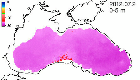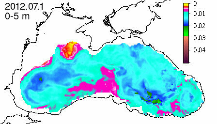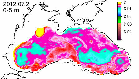 colored detrital matter absorption coefficient at 490 nm, m^-1