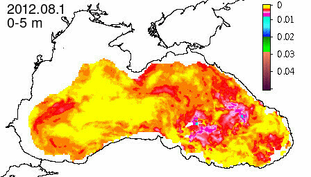 colored detrital matter absorption coefficient at 490 nm, m^-1