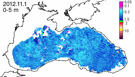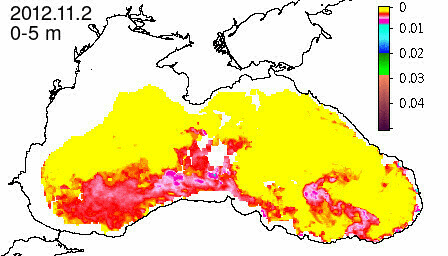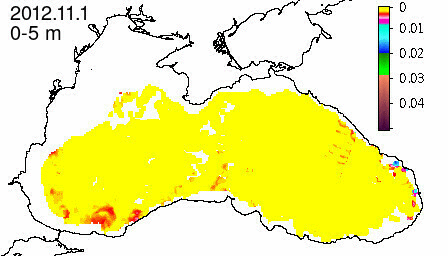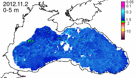 chlorophyll a concentration, mg m^-3