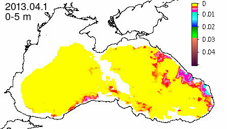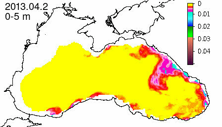 chlorophyll a concentration, mg m^-3