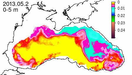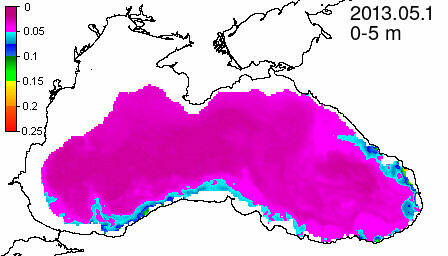 colored detrital matter absorption coefficient at 490 nm, m^-1