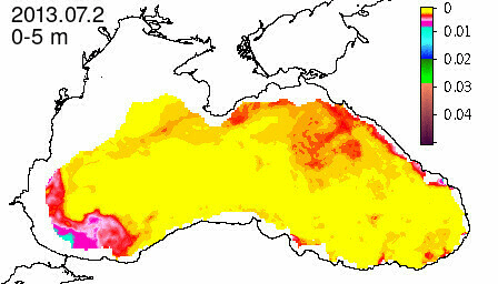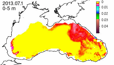 colored detrital matter absorption coefficient at 490 nm, m^-1