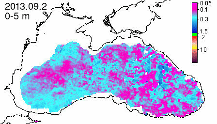 chlorophyll a concentration, mg m^-3