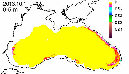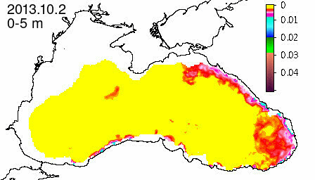 colored detrital matter absorption coefficient at 490 nm, m^-1