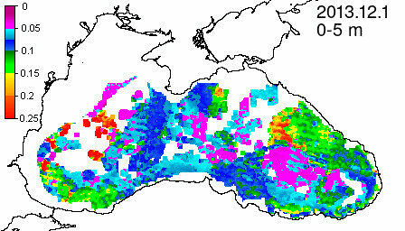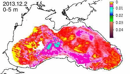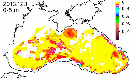 chlorophyll a concentration, mg m^-3