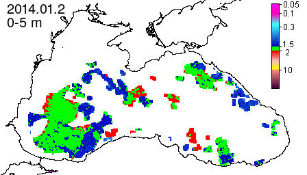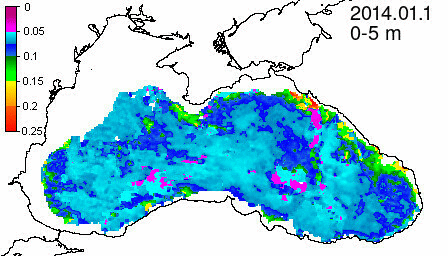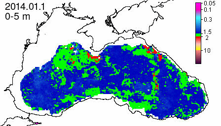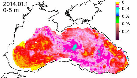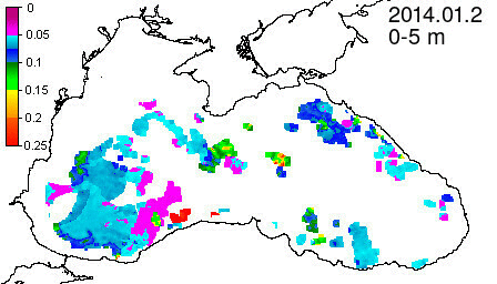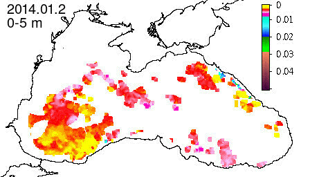 colored detrital matter absorption coefficient at 490 nm, m^-1