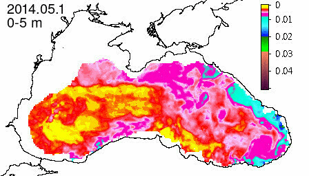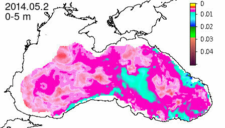 chlorophyll a concentration, mg m^-3