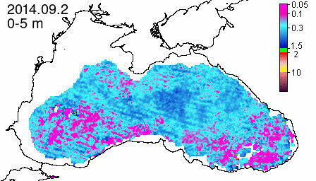 chlorophyll a concentration, mg m^-3