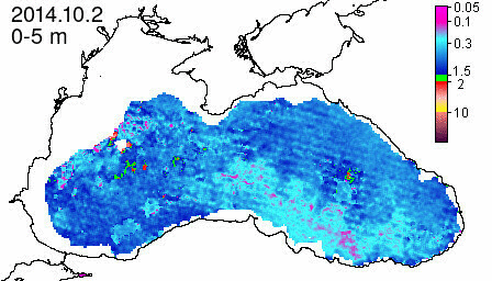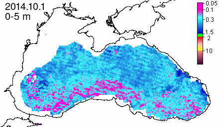 chlorophyll a concentration, mg m^-3
