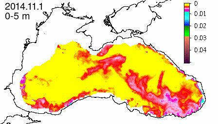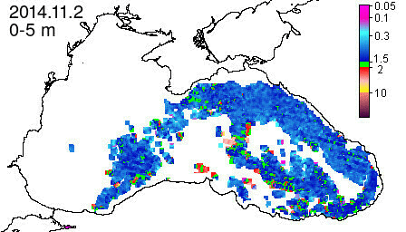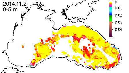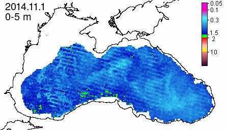 chlorophyll a concentration, mg m^-3