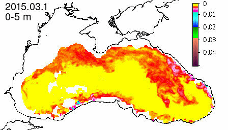 chlorophyll a concentration, mg m^-3