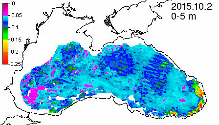colored detrital matter absorption coefficient at 490 nm, m^-1