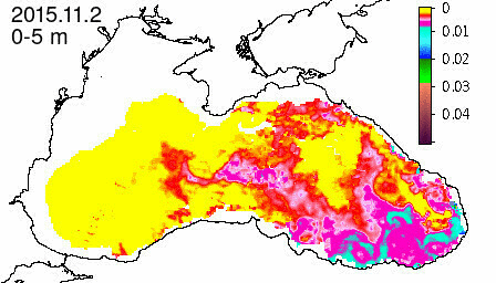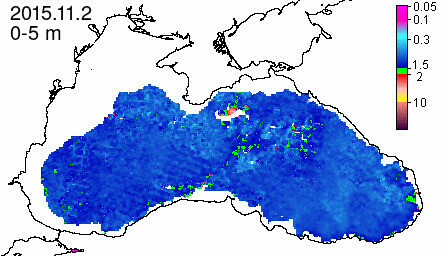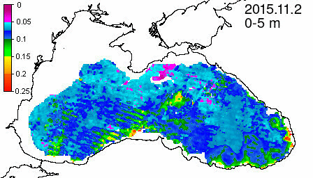 colored detrital matter absorption coefficient at 490 nm, m^-1