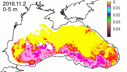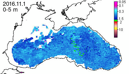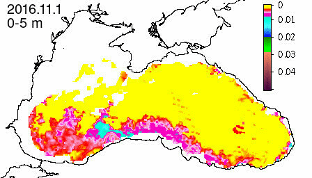 chlorophyll a concentration, mg m^-3