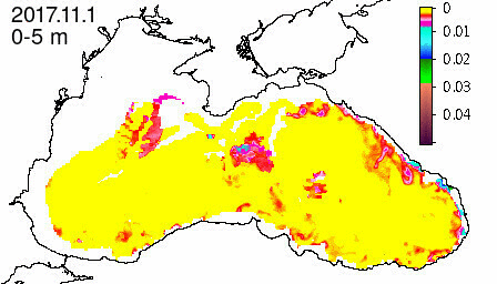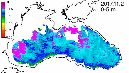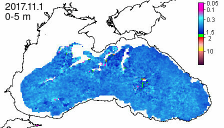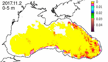 colored detrital matter absorption coefficient at 490 nm, m^-1