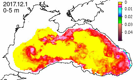 chlorophyll a concentration, mg m^-3