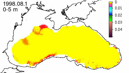 colored detrital matter absorption coefficient at 490 nm, m^-1