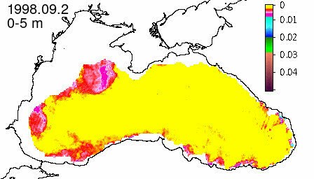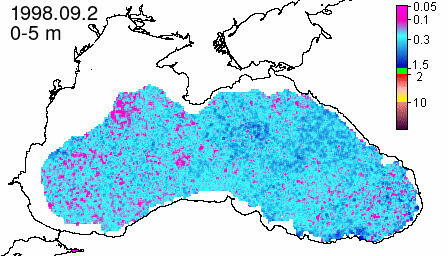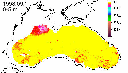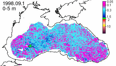 chlorophyll a concentration, mg m^-3