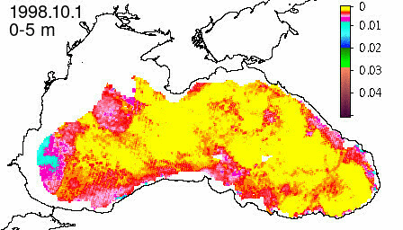 chlorophyll a concentration, mg m^-3