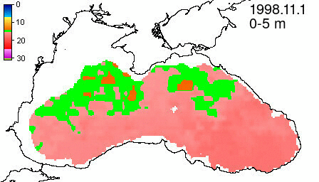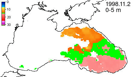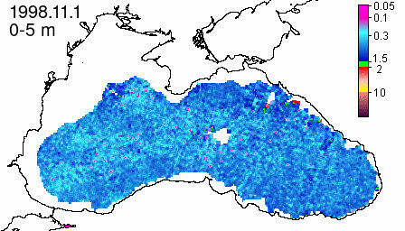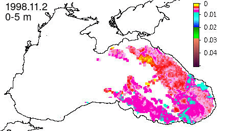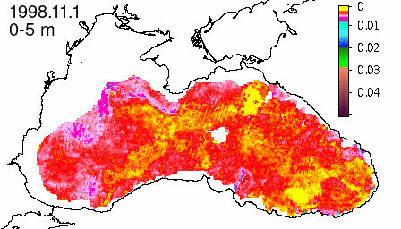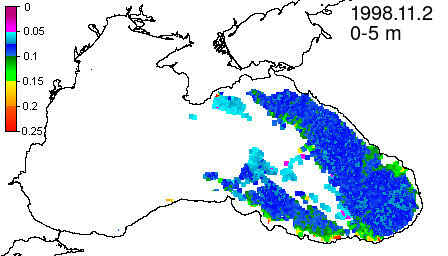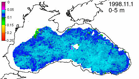 colored detrital matter absorption coefficient at 490 nm, m^-1