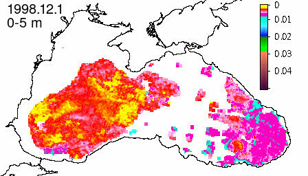 colored detrital matter absorption coefficient at 490 nm, m^-1