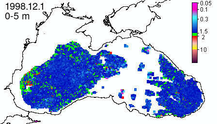 chlorophyll a concentration, mg m^-3