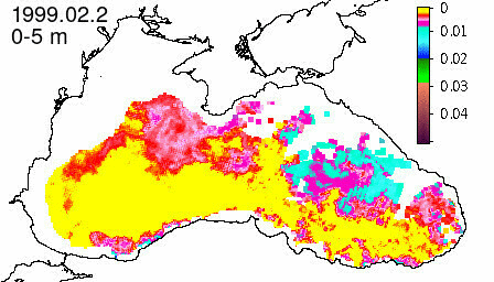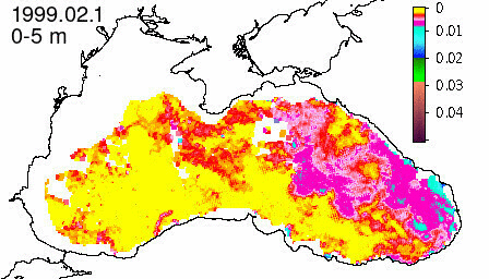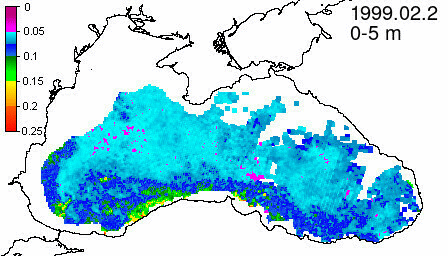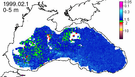 chlorophyll a concentration, mg m^-3