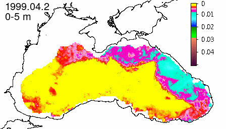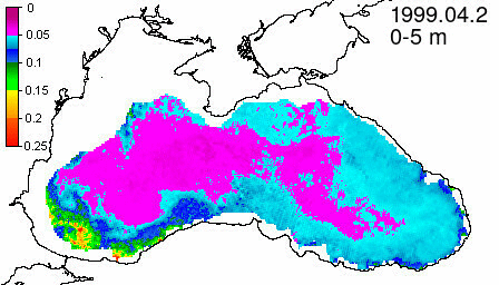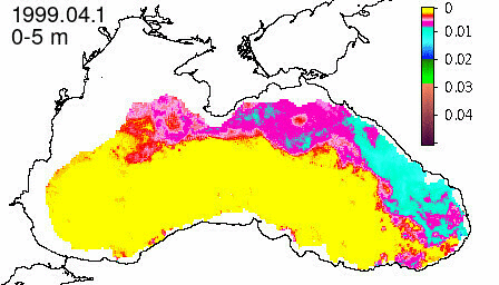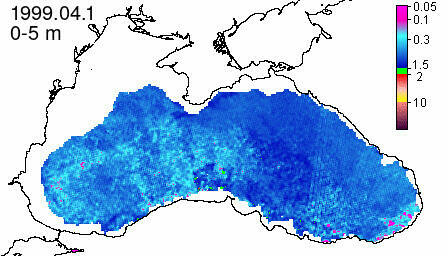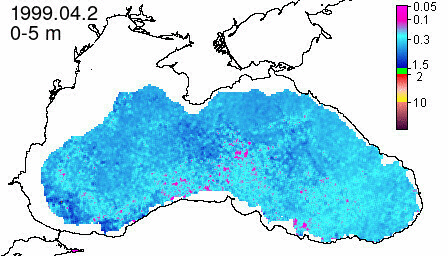 chlorophyll a concentration, mg m^-3