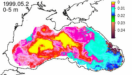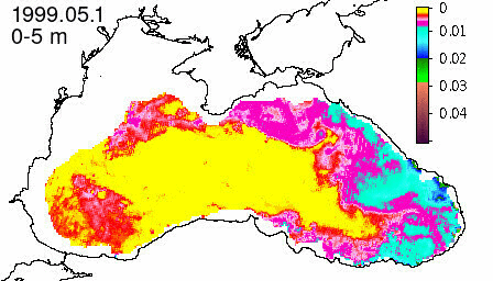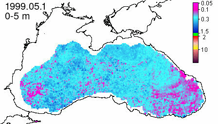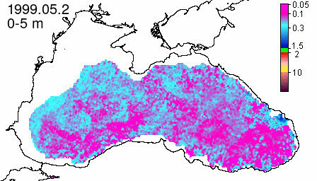 chlorophyll a concentration, mg m^-3